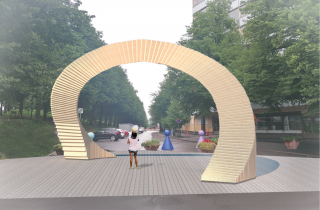 Akseli Leinosen Kylän portti -teos on valittu taidekilpailun kautta syksyllä 2020. Teoksen toteutus alkoi loppuvuodesta 2020 ja teos on valmistunut toukokuussa 2021. Leinosen teoksen toteuttajaksi valikoitui pitkänlinjan taidebetoninasiantuntija Betonipallas. Taiteilijan ja taiteilijayrittäjän yhteistyötä voimme ihailla teoksessa. Portin muoto ja sävy huokuvat ammattitaitoa. Tämä teos tulee olemaan pitkään lahtelaisten ilona.