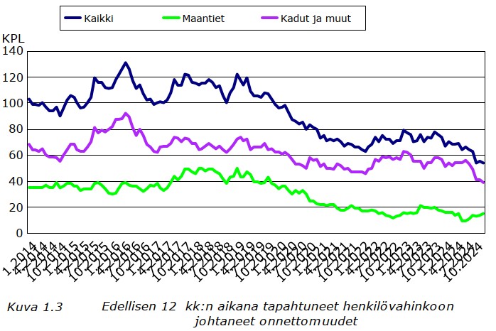 Kaikki liikenneonnettomuudet eivät välttämättä päädy tilastoihin, esimerkiksi omaisuusvahinkoja sekä jalankulkijoiden tai pyöräilijöiden yksittäisonnettomuuksia voi jäädä tilastoimatta, kun onnettomuudesta selvitään ilman viranomaiskäyntiä. Vuodesta 2024 alkaen uutena onnettomuustyyppinä poliisi tilastoi sähköpotkulautaonnettomuudet.