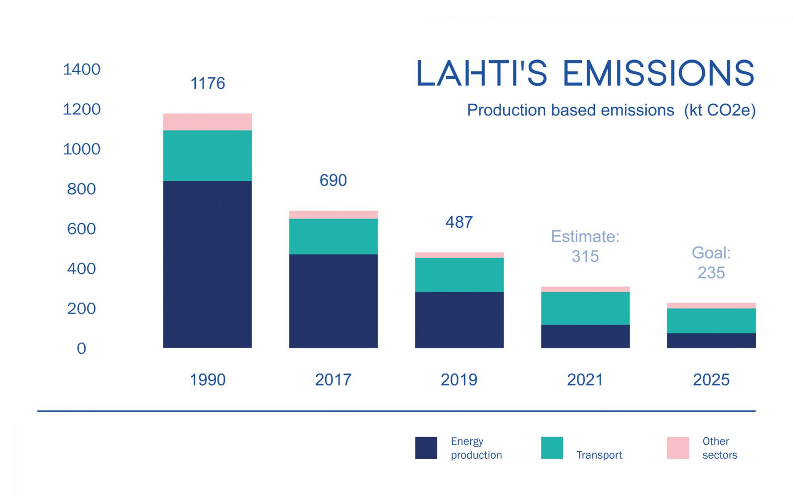 Recent emission calculations show that the City of Lahti has already managed to reduce its greenhouse gas emissions to less than half of the level of the reference year 1990.