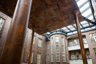 One significant change is the transformation of the previously open courtyard into a covered, warm space intended for various public and civic uses. Simultaneously, the building has been modernized to create an efficient and contemporary workspace for 165 city employees.