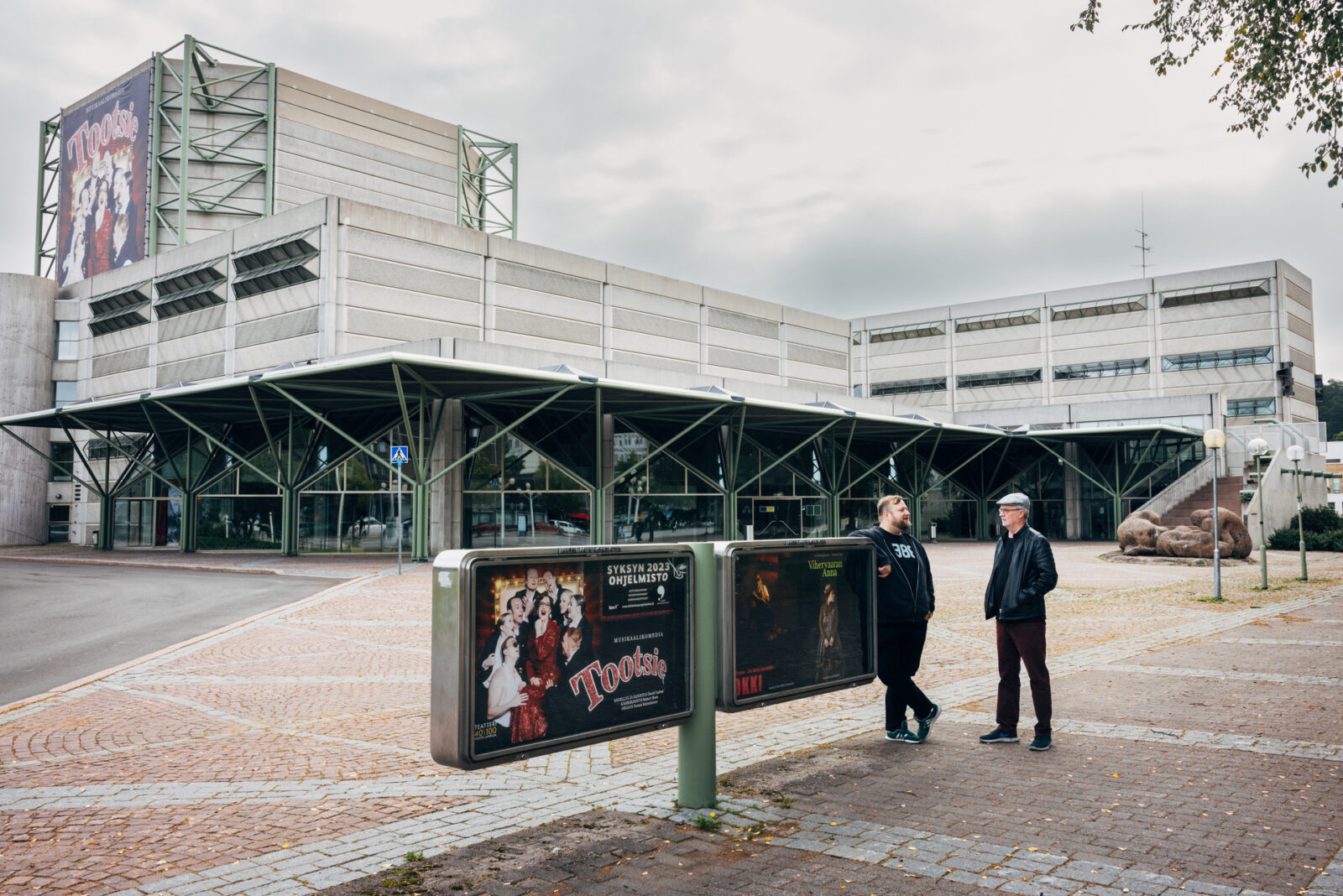 – Hän halusi tehdä teatterista kaikkia kutsuvan oleskelupaikan myös muuhun aikaan kuin iltaisin. Rakennus on komeasti teknisen näköinen ja nostaa esiin sen, miten lavasteilla luodaan teatterin todellisuutta. Se on kuin kääntötakki, sillä betoni on näkyvillä sekä sisällä että ulkona, Niskanen sanoo.