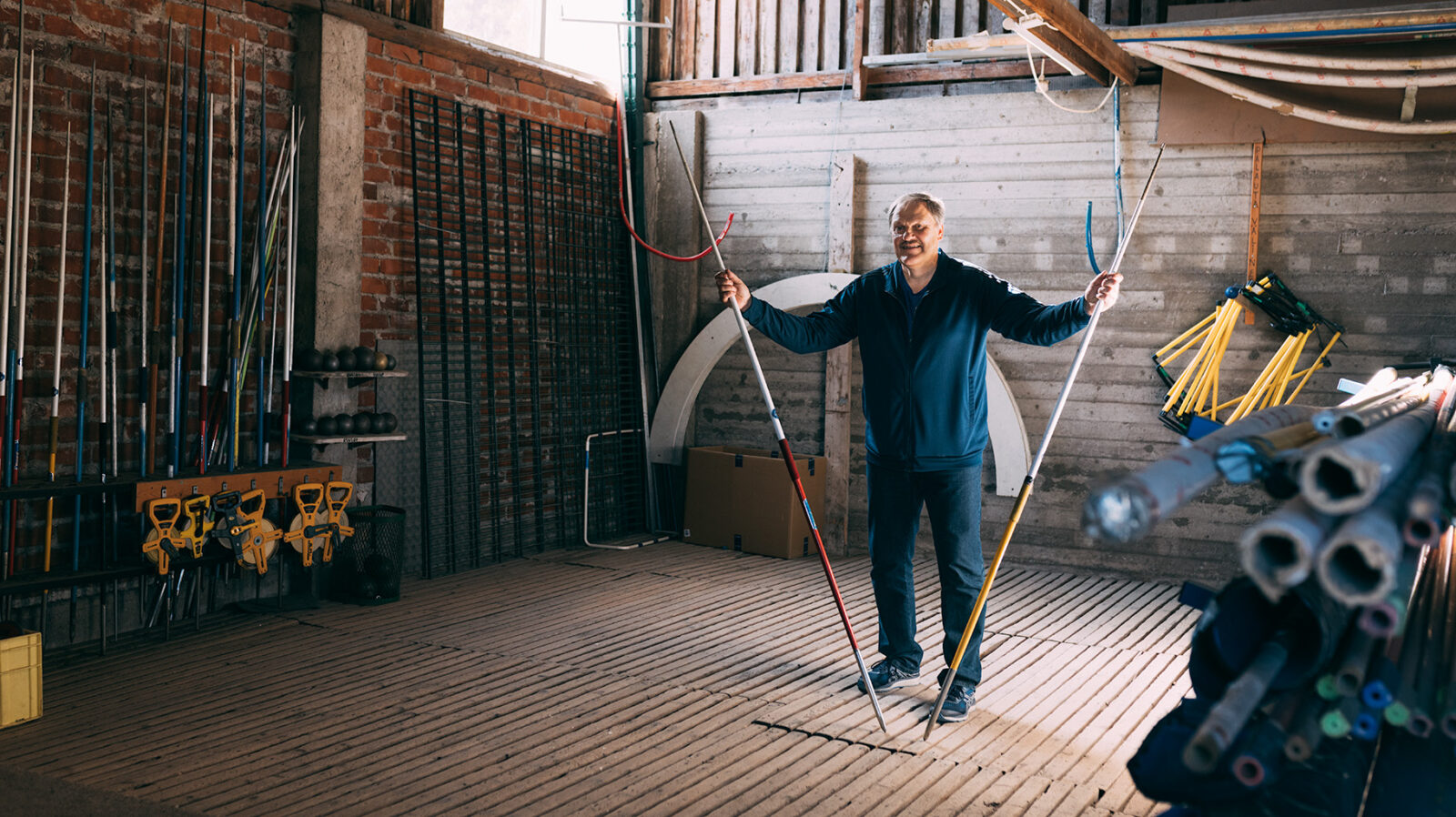 Entinen aktiiviurheilija viihtyy yhä urheilukentillä.