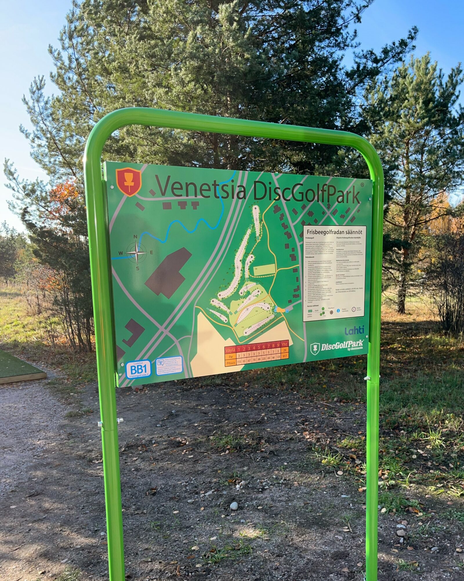 – Venetsian frisbeegolfrata sopii kaiken tasoisille harrastajille. Pääosa radan väylistä on lyhyitä, mutta joukkoon mahtuu pari yli 100 metrin väylää ja yksi yli 200 metrin väylä. Rata ei siis ole liian helppo edistyneemmällekään pelaajalle, radan suunnittelija Mikael Häme kertoo.