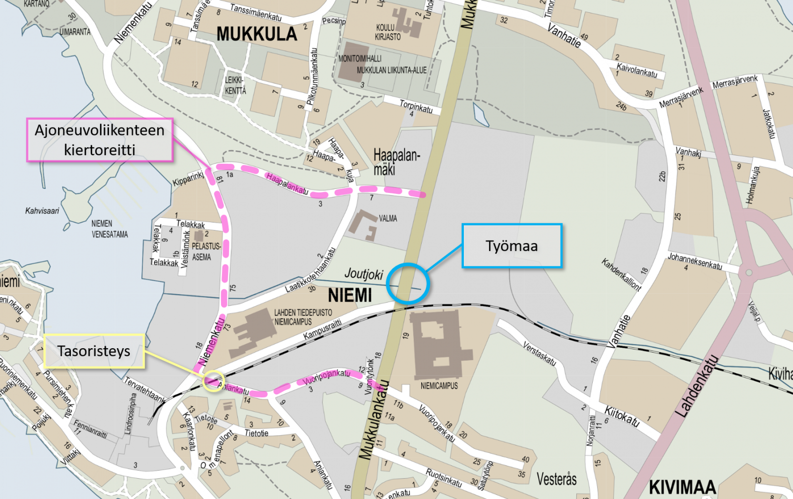 Nykyinen Iskun silta puretaan ja tilalle rakennetaan uusi silta. Työt aiheuttavat tilapäisiä liikennejärjestelyjä ja rajoittavat alueen käyttöä. Mukkulankatu katkaistaan työmaan kohdalta ja kevyen liikenteen väylälle tehdään oma kiertotiensä sillan itäpuolelta. Autoliikenne ohjataan erilliselle kiertoreitille Vuoripojankadun, Aniankadun, Niemenkadun ja Haapalankadun kautta.