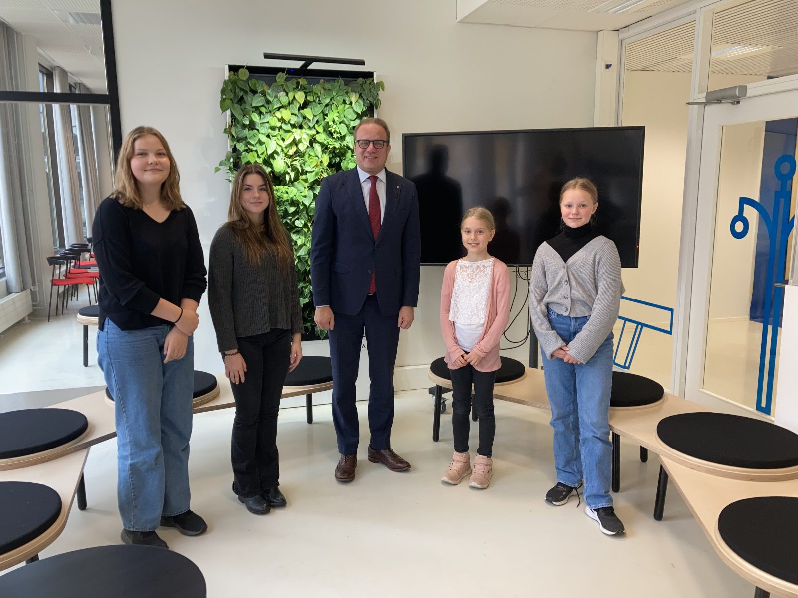 Kaupunginjohtaja ja nuoret keskustelivat muun muassa Lahden ympäristöpääkaupunkivuodesta ja kestävästä liikkumisesta. Oppilaiden mielestä Lahti on edistynyt paljon ympäristöasioissa.