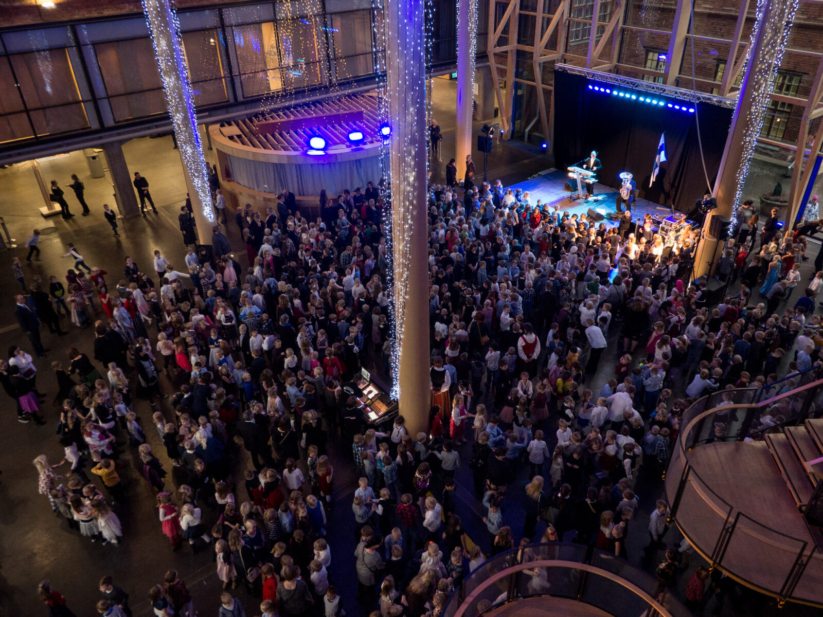 Vieraat ottaa vastaan kaupunginjohtaja Pekka Timonen. Kättelyn jälkeen juhlat jatkuvat musiikin ja tarjoilun parissa. Juhlavieraita ovat viihdyttämässä sirkusseikkailu Kolmen kopla sekä Rokkibändi-yhtye, solistina Sari Sakki, Riku Heino (rummut), Antti Akkanen (basso), Kimmo Parviainen (piano) ja Jaakko Rossi (kitara). Juhla päättyy yhteiseen Maamme-lauluun.