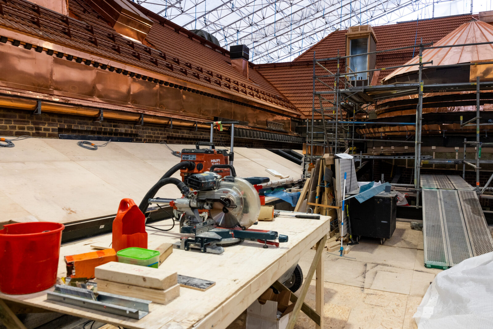 Kuparien uusimisesta ja kattotöistä vastasivat paikalliset tekijät. Rakennushankkeen urakoitsijoissa on pyritty käyttämään mahdollisimman kattavasti paikallisia ja lähialueiden toimijoita paitsi työllistävyyden, myös työn joustavuuden vuoksi. Muun muassa teräsrunko-, sähkö-, valaisimien kunnostus, lattioiden pinnoitukset, puuikkunoiden- ja ovien kunnostukset, vesikatto- ja väliseinätyöt sekä maanrakennus ja muuraukset toteutuvat paikallisten urakoitsijoiden voimin. Myös näyttävät kattokupolien sekä vesikaton kuparipeltityöt toteuttaa paikallinen peltisepänliike.