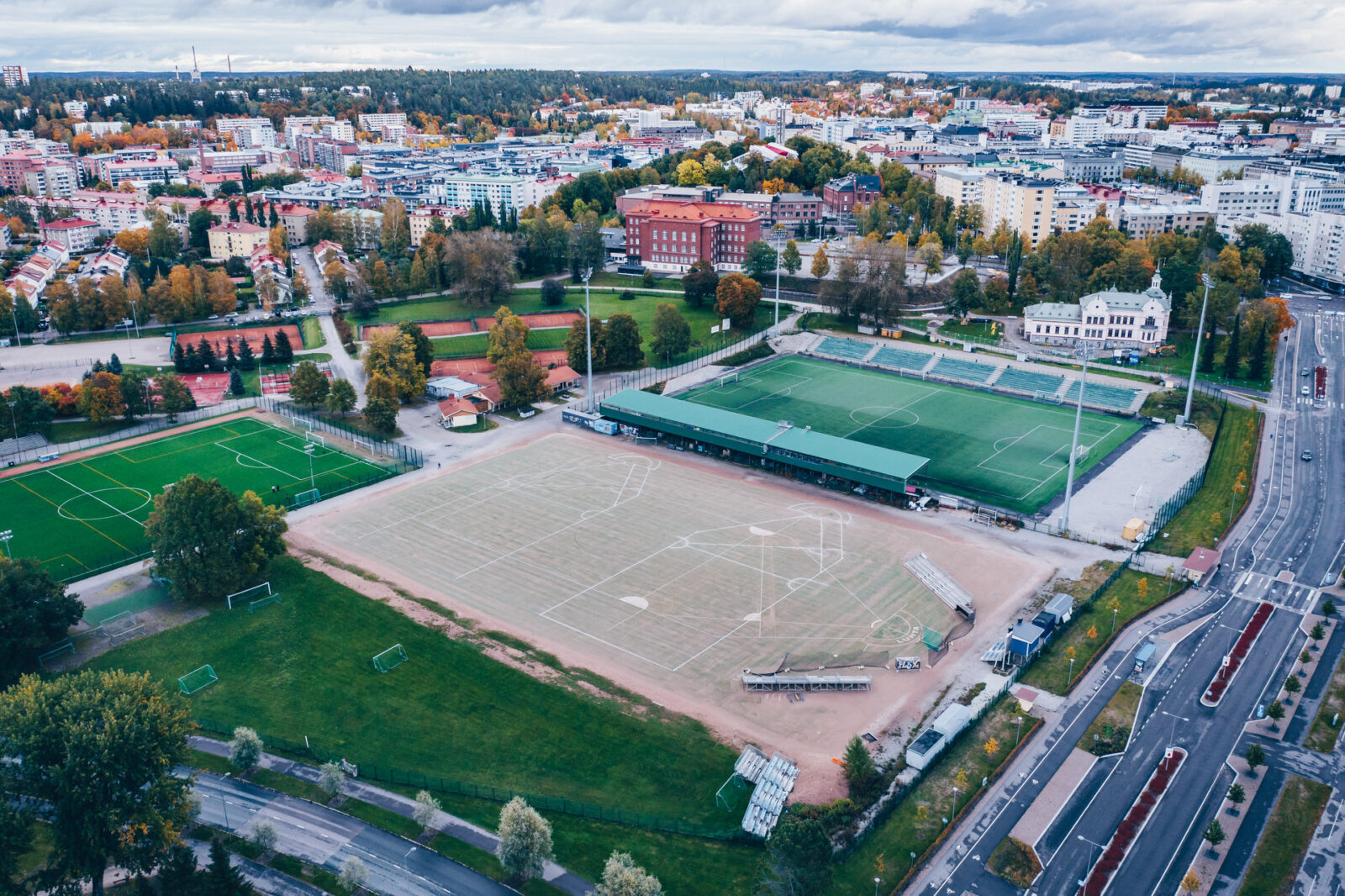 Kisapuiston tekojää- ja pesäpallokentän rakentaminen käynnistyy maanantaina 4.7. Kisapuiston alueen uudistaminen alkaa nykyisen pesäpallokentän alueelle suunnitellulla täysikokoisen hiekkatekonurmipintaisen kentän ja tekojääradan rakentamisella.