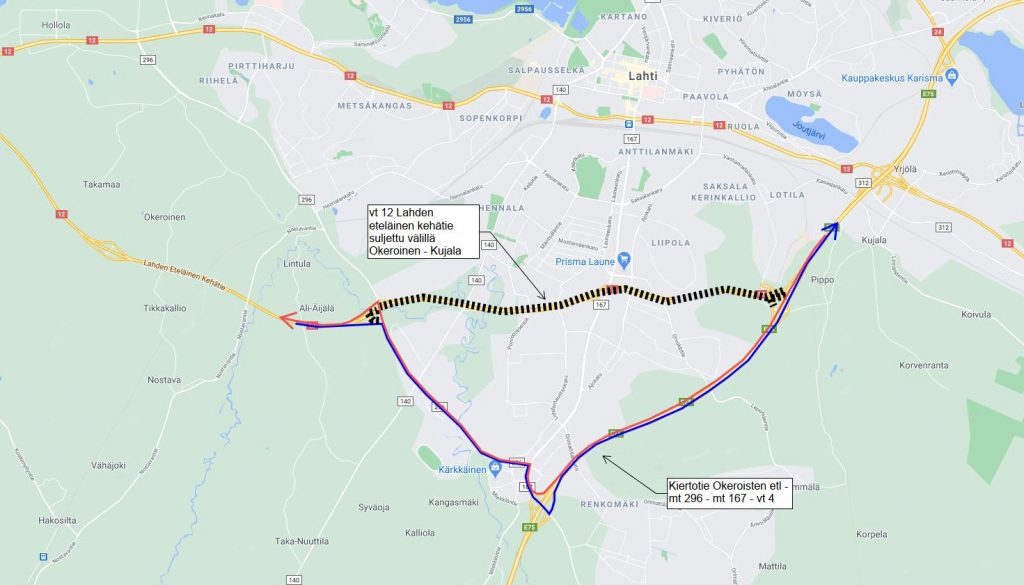 Yösulun aikana huolletaan Patomäen ja Liipolan tunneleita sekä testataan tunneleiden teknisiä laitteita. Työn vuoksi eteläinen kehätie suljetaan liikenteeltä Okeroisen ja Kujalan väliltä kello 21.00-04.00 väliseksi ajaksi. Sulun aikainen kiertotie kulkee maantien 296, maantie 167 ja valtatie 4 kautta.