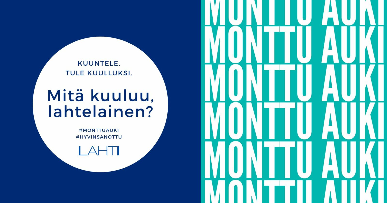 Monttu auki -keskustelutapahtuma järjestettiin ensimmäisen kerran lokakuussa 2021, osana Euroopan ympäristöpääkaupunkivuoden tapahtumia. Lahden Monttu auki 2022 oli Hämeenlinnassa järjestettävän Ylen Hyvin sanottu -keskustelufestivaalin satelliittitapahtuma. Monttu auki -keskusteluiden keskeisimpiä ajatuksia pääset lukemaan täällä: Lahtelaisten mielestä yhteisöllisyys ja vakaa arkiympäristö tukevat omaa hyvinvointia – Lahti