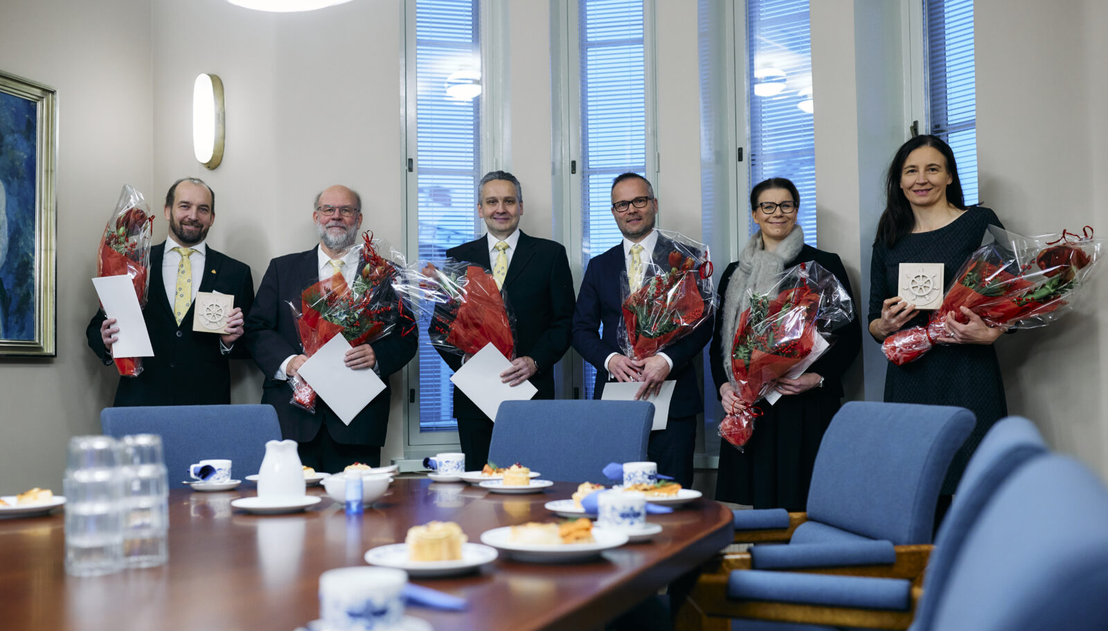 Tunnusten vastaanottajien lisäksi tilaisuuteen osallistui valtuustotoimikunta, kaupunginjohtaja ja kaupungin johtoryhmän jäseniä.