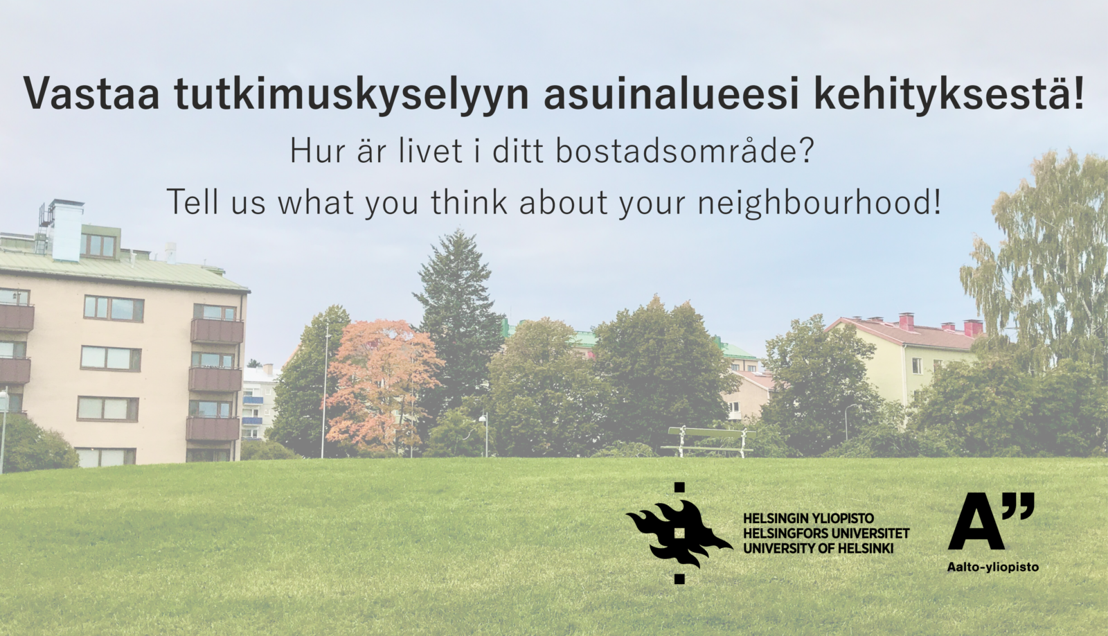 Vastaa Helsingin yliopiston ja Aalto-yliopiston tutkijoiden kyselytutkimukseen asuinalueesi kehityksestä ja osallistu 50 euron arvoisen lahjakortin arvontaan!