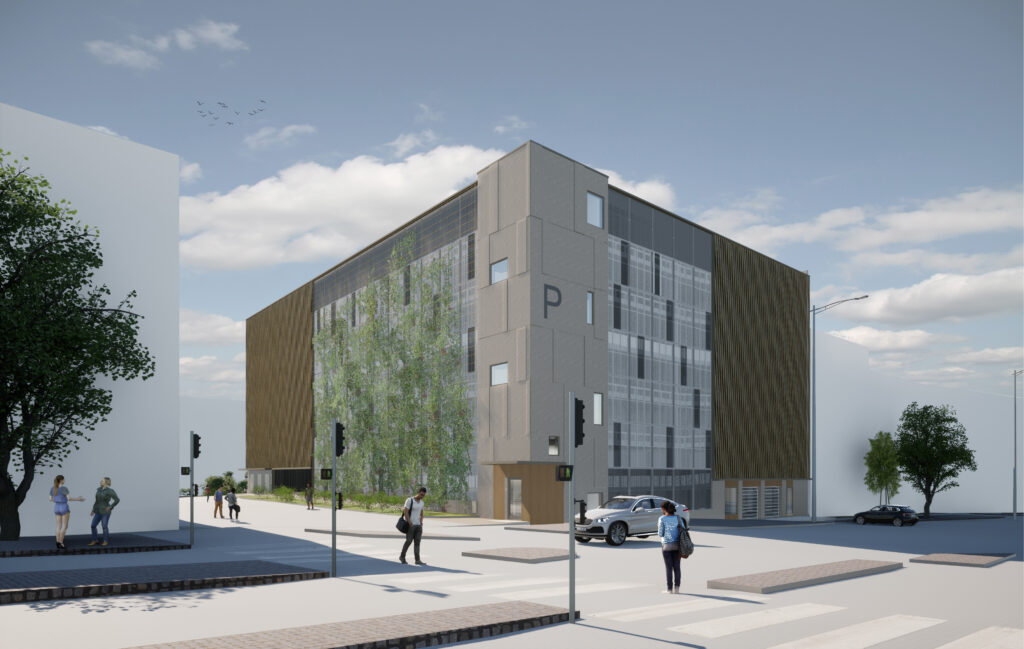 Suunnitelman mukaan pysäköintitalon julkisivut ovat hiekansävyistä betonia, viherseinää sekä puurakenteinen koristeseinä. Katolle rakennetaan viherkatto ja noin 400 neliömetriä aurinkopaneeleita.