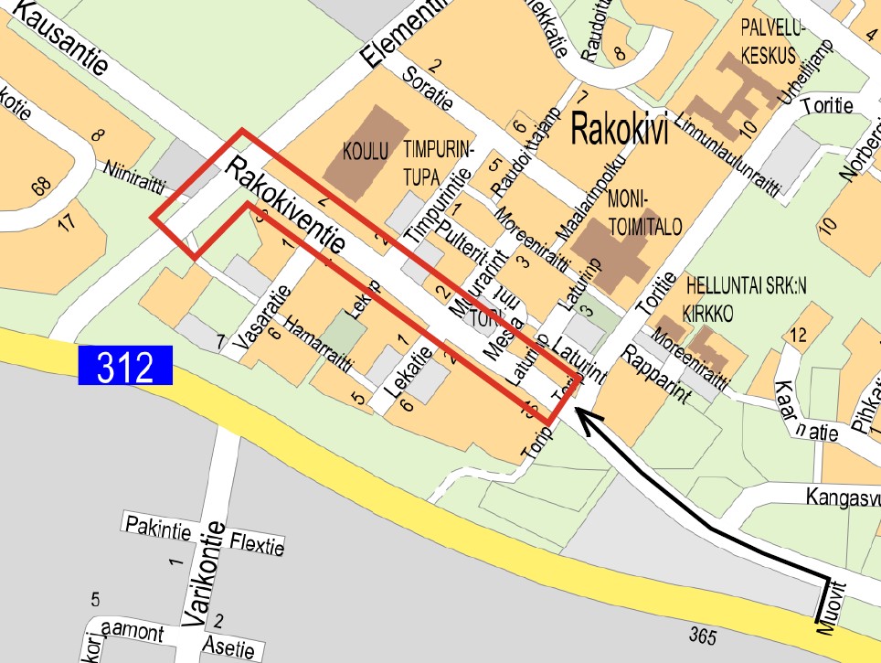 Liikennejärjestelyt Rakokiventiellä ja Elementintiellä muuttuvat useaan kertaan töiden edetessä. Rakokiventietä ja Elementintietä voi ajaa läpi töiden aikana, mutta kiertoreittejä esimerkiksi Muovitien kautta suositellaan mahdollisuuksien mukaan.
