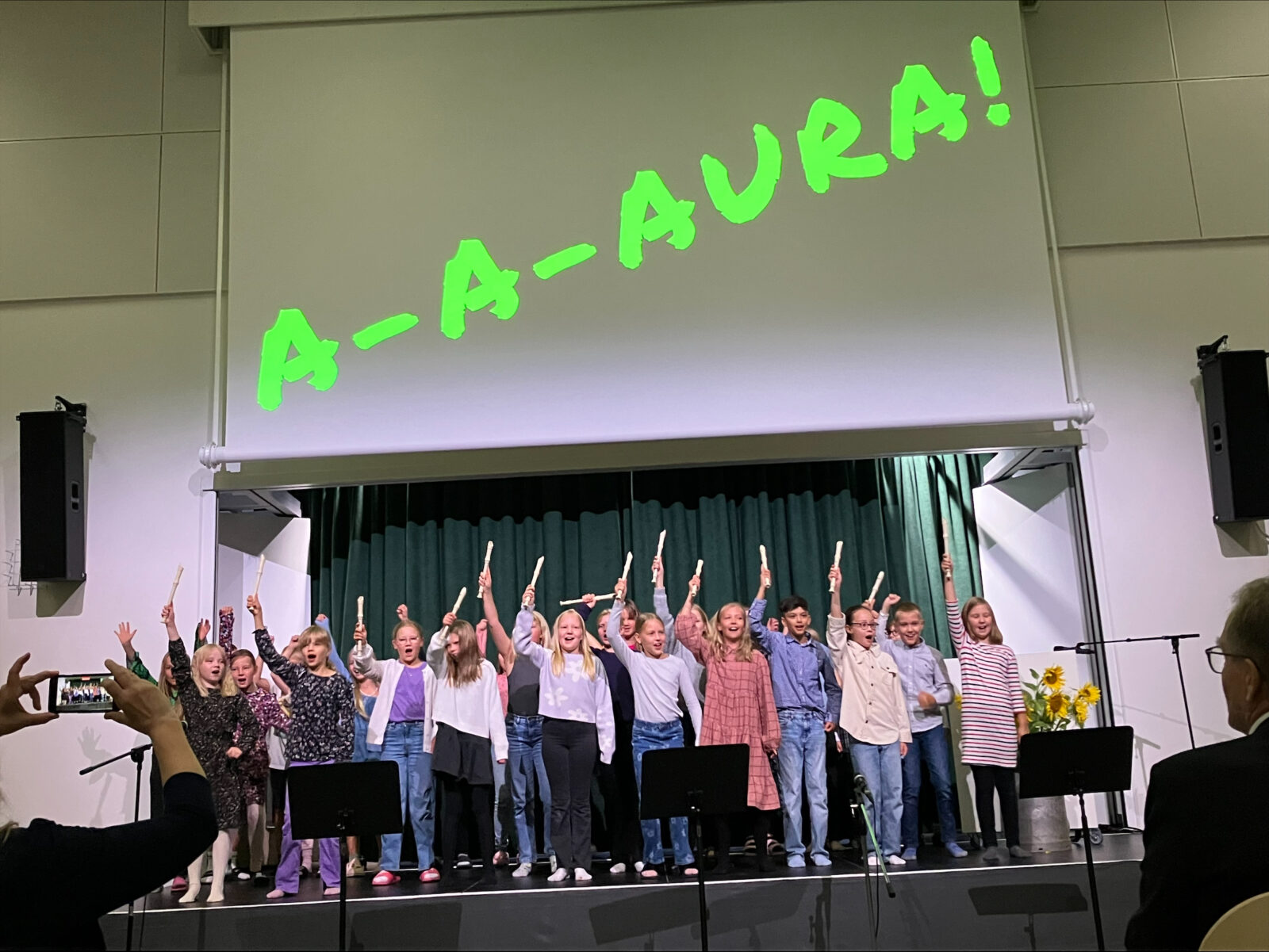 Avajaisjuhlan ohjelmassa oli runsaasti lasten esityksiä rakentamisen eri vaiheista ja tunnelmista uuden edessä. Lasten laulu-, tanssi- ja musiikkiesitykset sekä kutsuvieraatkin liikkeelle saanut ohjelma tekivät monitoimitalon avajaisista Auran näköiset, yhteisöllisen ja kodikkaan tapahtuman.