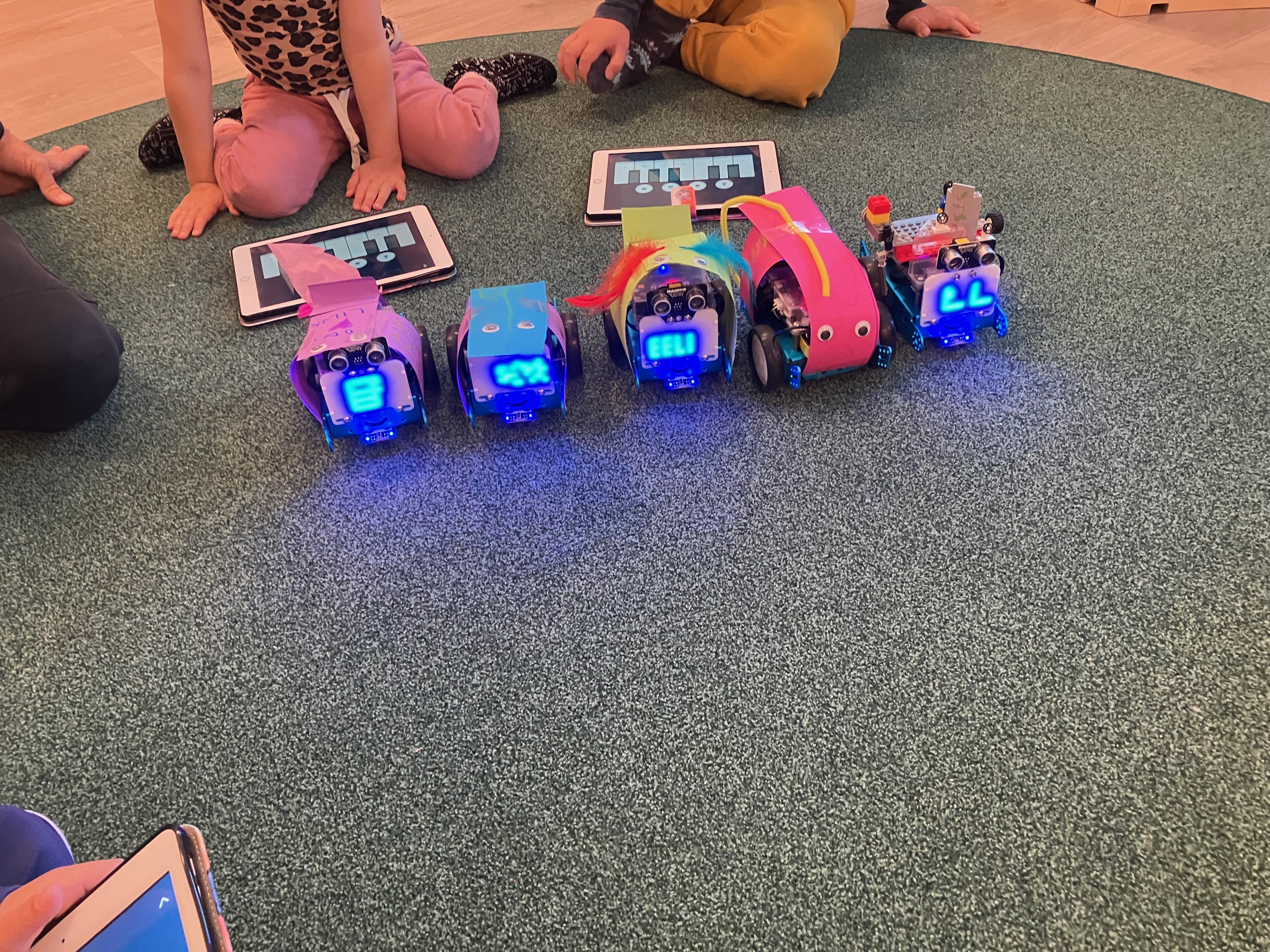 – Sen jälkeen siirrytään käyttämään ipad-sovellusta, jolla robotteja pystyy ohjaamaan, soittamaan pieniä sävelmiä ja piirtämään robottien näyttöön kuvioita tai tekstiä.