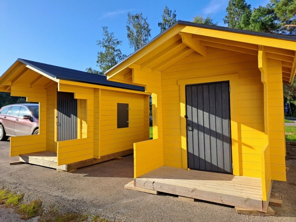 Kaksi iloisen keltaista mökkiä löytävät uudet kotinsa Erstan ja Rakokiven päiväkodin pihoista. Tilakeskuksen ja Ympäristöpajan hyvin onnistunut yhteistyö saa jatkoa.