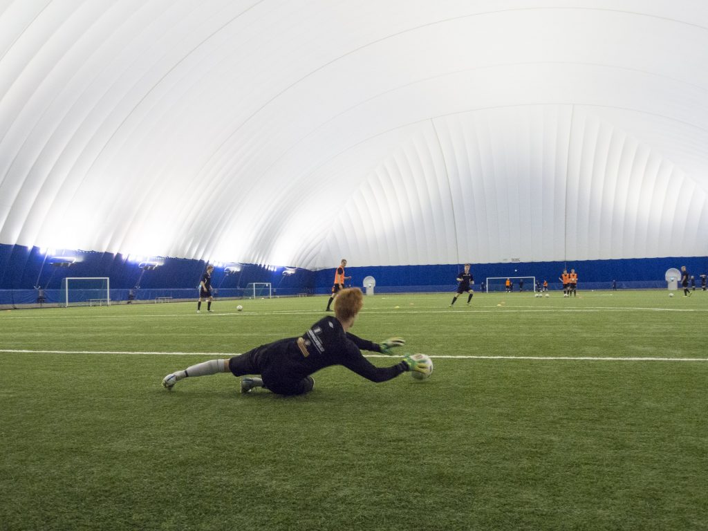 Mukkulan palloiluhallissa on turvallista pelata ja harjoitella. Hallin tekonurmi on vaihdettu kesällä 2016.