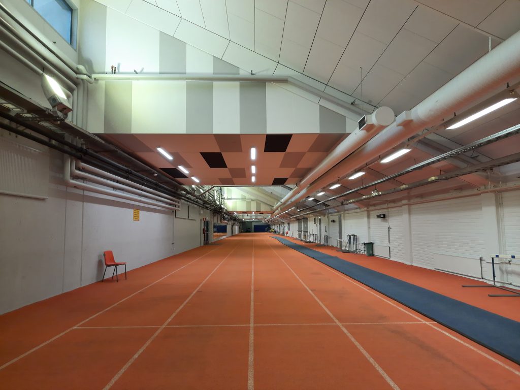 Urheilukeskuksen pääkatsomorakennuksen 1. kerroksessa oleva täysimittainen 110m juoksusuora palvelee eri lajien harrastajia. Tilassa on myös korkeushyppypaikka, pituushyppypaikka ja pieni kuntosalilaiteryhmä.