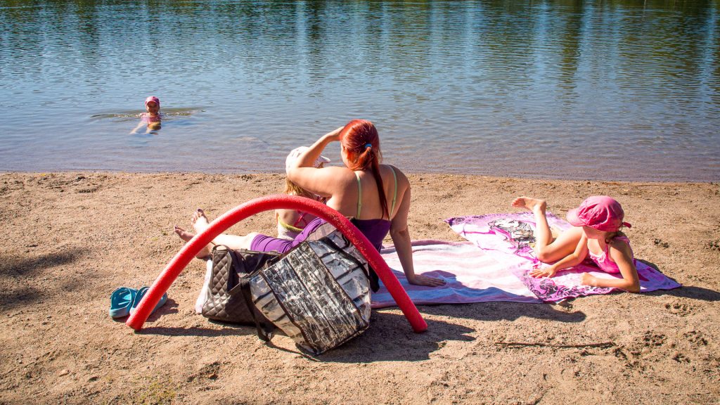 Uimarannan varusteluun kuuluvat pukukopit, WC ja laiturit.