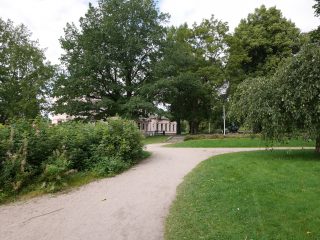 Rakennuksen länsipuolelle tehdään pieni tapahtumakenttä, joka muistuttaa vanhoista kiviportaista, jotka on siitä purettu jo 50-luvulla. Tapahtumakenttä rajataan matalalla leikatulla pensasaidalla, jonka eteen istutetaan ruusutarha ja muotoon leikattuja pensaita.